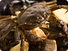 每逢炎夏,青母蟹會在產卵時棲身于淺灘河畔,在陽光的照射下,體內的蟹膏分解成金黃色的油脂,然后滲透到體內的各個部分,使得整只蟹晶瑩剔透、充滿黃油,因此被稱為黃油蟹。